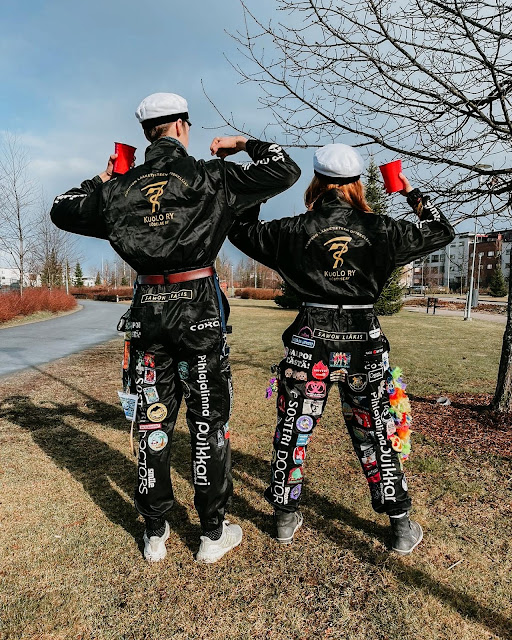 Vappu toikin tervetulleen hengähdystauon ympärillä tapahtuvan elämänmuutoksen keskelle, kun parin päivän ajaksi sai pitkästä aikaa vetää päälle opiskelijahaalarit sekä pistää päähän YO-lakki. Unohtamatta tietenkään mahdollisuutta viettää aikaa kaveriporukan kesken. Muuttopakkailujen jatkuminen 2.5. pienessä päänsäryssä toimi myös hyvänä loppubuustina ennen muuttopäivää...